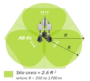 A8 Base station has both a wired ethernet port and 5 Ghz. wireless backhaul for connection to the backend network
