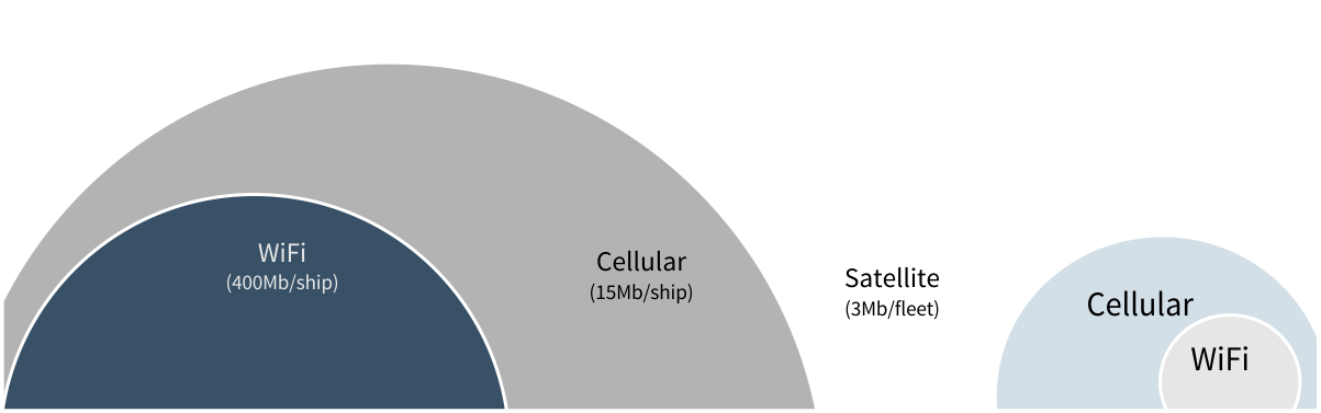 Terrestrial :10,15, 20 Mbps bidirectional at certain Ports of Call and Long Reach from Port of Call to improve Throughputs