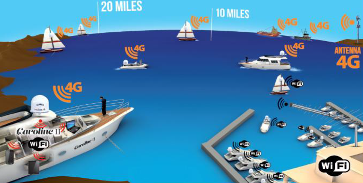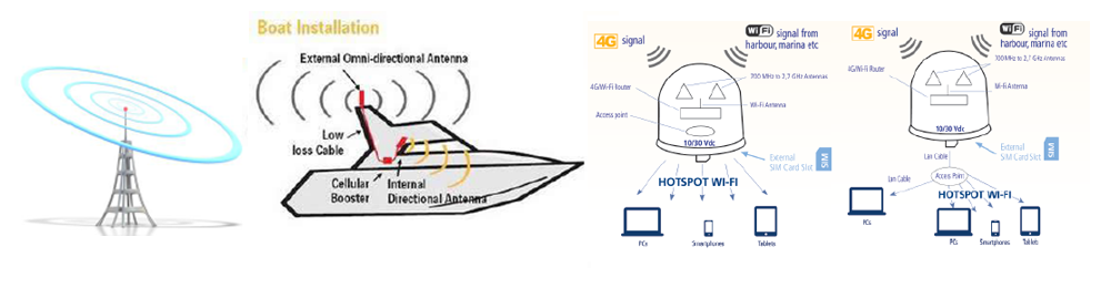 3G / 4G Signal boosters for yachts close to cellular coverage.