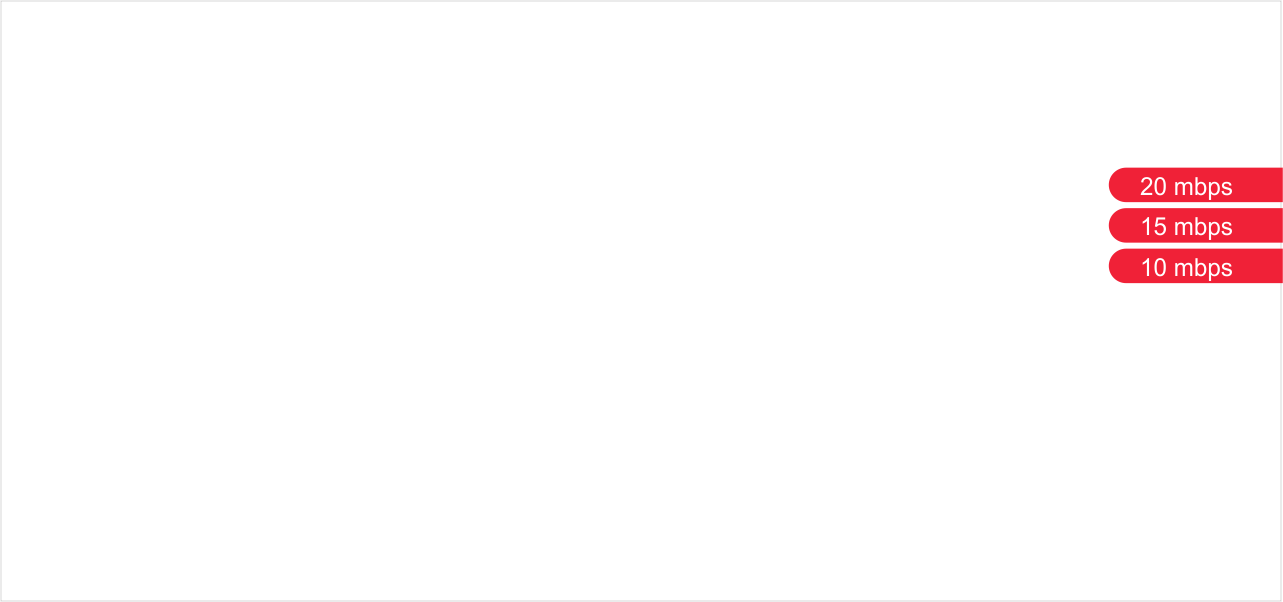 Flexible broadband internet with throughputs up to 20 Mbps for Hybrid Services (Terrestrial & Satellite)